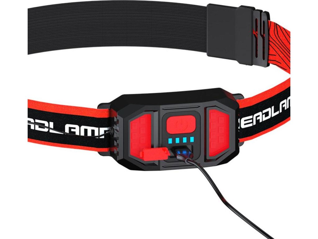 - Čelovka je vybavena červeným blikajícím zadním výstražným světlem.