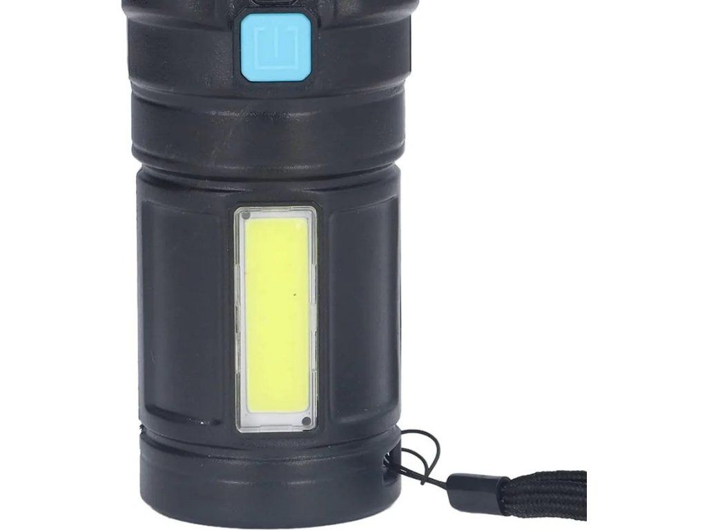 Velmi výkonná přenosná dobíjecí svítilna vybavená 5 velmi jasnými LED diodami a další boční COB.