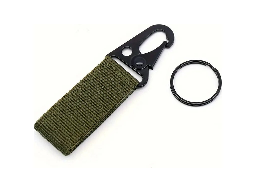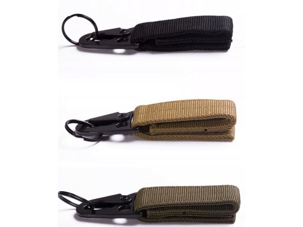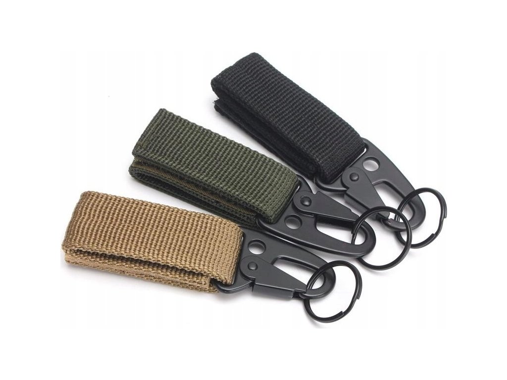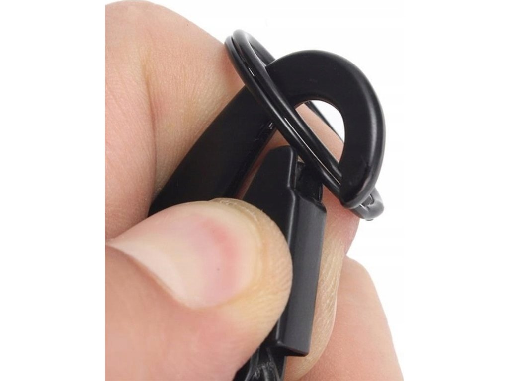 Tato karabina je nepostradatelná, ať už se chystáte na turistiku, vycházku, kempování, rybaření nebo lov. Karabina sedí spolu s pevným látkovým popruhem, který lze připevnit například na opasek nebo batoh. Díky přiloženému kroužku na klíče můžete do háku karabiny tvaru orlího zobáku připevnit vše od klíčů/klíčků po otvíráky na konzervy, rukavice a zavírací nože a mít své příslušenství a vybavení po ruce, když jste venku.