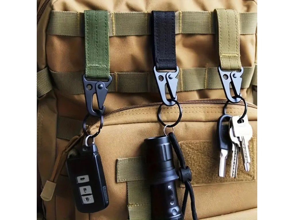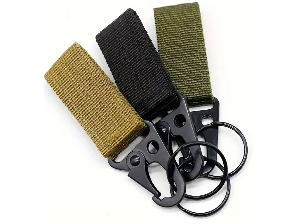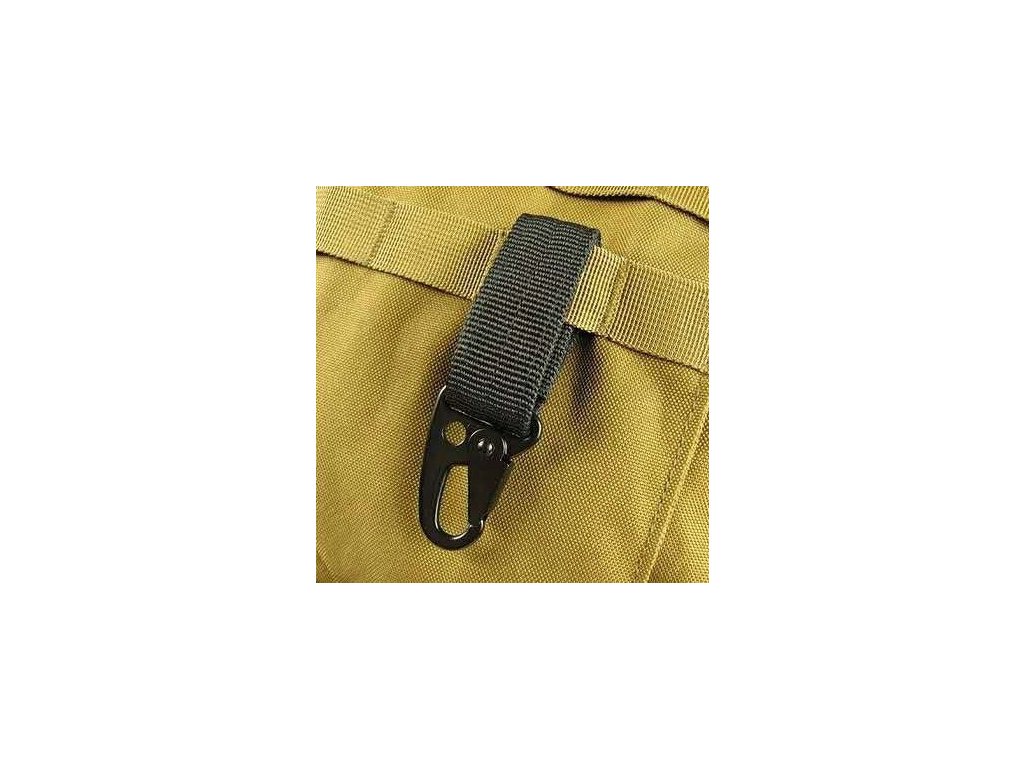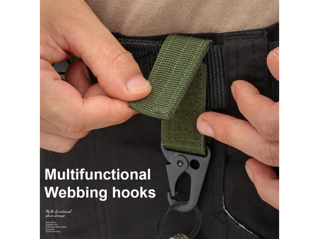 Tato karabina je nepostradatelná, ať už se chystáte na turistiku, vycházku, kempování, rybaření nebo lov. Karabina sedí spolu s pevným látkovým popruhem, který lze připevnit například na opasek nebo batoh. Díky přiloženému kroužku na klíče můžete do háku karabiny tvaru orlího zobáku připevnit vše od klíčů/klíčků po otvíráky na konzervy, rukavice a zavírací nože a mít své příslušenství a vybavení po ruce, když jste venku.