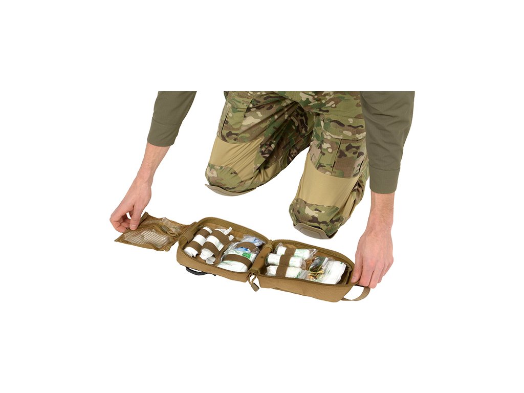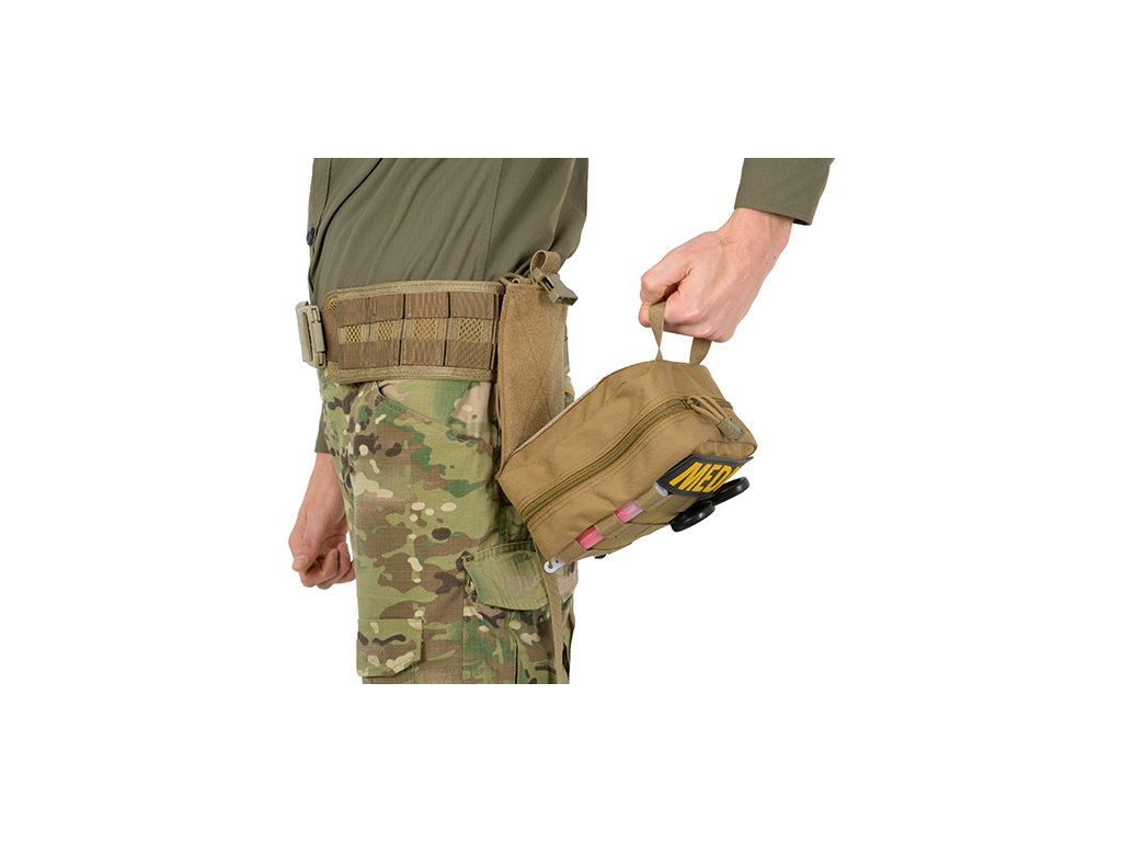 Lékařské pouzdro navržené společností 8FIELDS, společností vyrábějící moderní taktické vybavení. Vyrobeno z vysoce kvalitního polyesteru 1000D, který se vyznačuje vysokou odolností proti mechanickému poškození a díky PU úpravě, odolnosti vůči sněhu a vodě. Díky odtrhávacímu a vyklápěcímu designu s vnitřním organizérem poskytuje lékárnička rychlejší přístup k individuální lékařské výbavě. Kompatibilní se všemi platformami MOLLE.