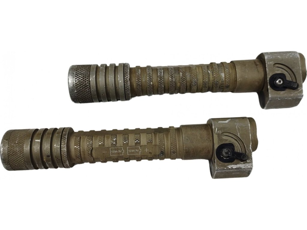 - Použité zboží (svítilny jsou odzkoušené a plně funkční, mají oděrky laku a nesou viditelné stopy užívání, skla a diody svítilen bez poškození, vyřazené z armádních zásob, cena za 1 kus svítilny bez baterií).