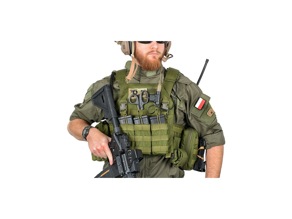 - Tento systém umožňuje operátorovi rychle sejmout přední panel panel, a nahradit jej širokou škálou víceúčelových sumek, pouzder, kapes, taktického vybavení, doplňků, a další spousty možností.