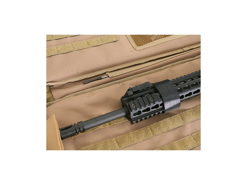 - Interiér je pokrytý pásky na suchý zip pro přesné umístění pušky a různého příslušenství.