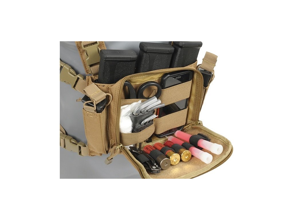 8FIELDS, společnost vyrábějící moderní taktické vybavení pro aktivní střelce. Vyrobeno z vysoce kvalitního polyesteru 1000D, který se vyznačuje vysokou odolností proti mechanickému poškození a díky PU úpravě, odolnosti vůči sněhu a vodě. Tato víceúčelová hrudní souprava se používá k uložení munice, zásobníků a dalších důležitých věcí. Je vybavena klokaní kapsou která obsahuje elastické proužky pro uložení vybavení. Nastavitelné polstrované ramenní popruhy a nastavitelný zadní popruh X umožňuje, aby se Chest Rig přizpůsobil jakékoli velikosti. Kompatibilní se všemi platformami Buckle Up.