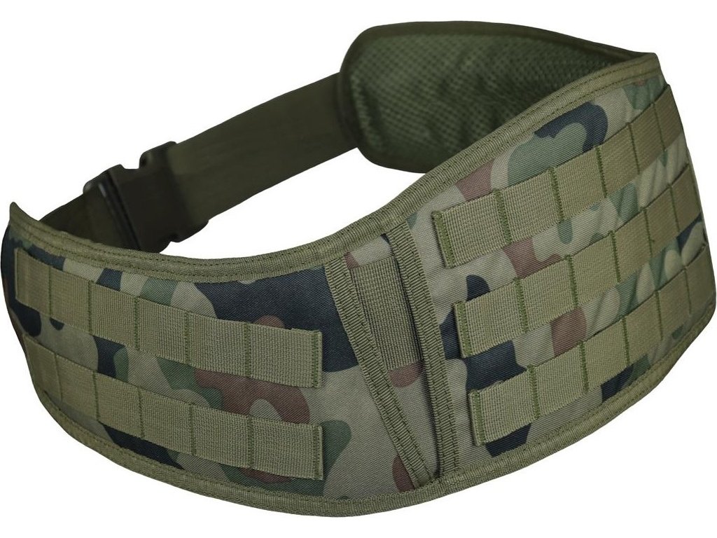 Lehký, profilovaný taktický pás s výplní z distanční pěny a prodyšnou síťovinou MESH na vnitřní straně. Mírně vyztužená struktura perfektně sedí na opasku a nastavitelný obvod se přizpůsobí uživateli. Pás je vyroben z polyesterové tkaniny 600D, která zajišťuje odolnost proti vlhkosti, roztržení, mačkání a vyblednutí pásu.