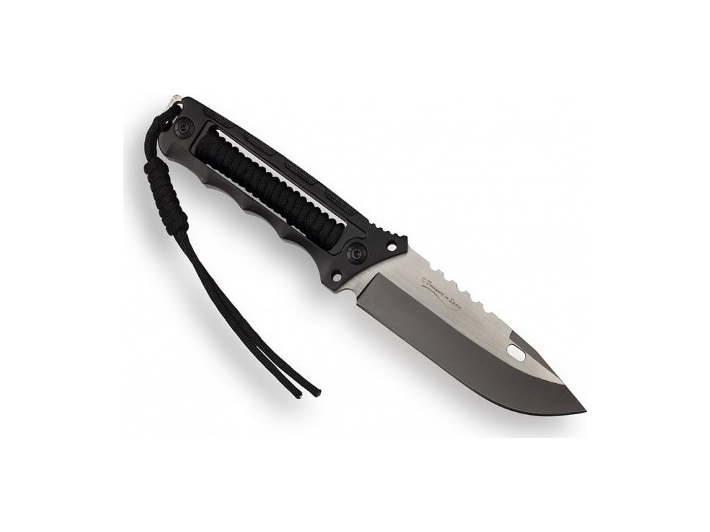 - Masivní konstrukce taktického nože fulltang s hladkou, širokou čepelí.