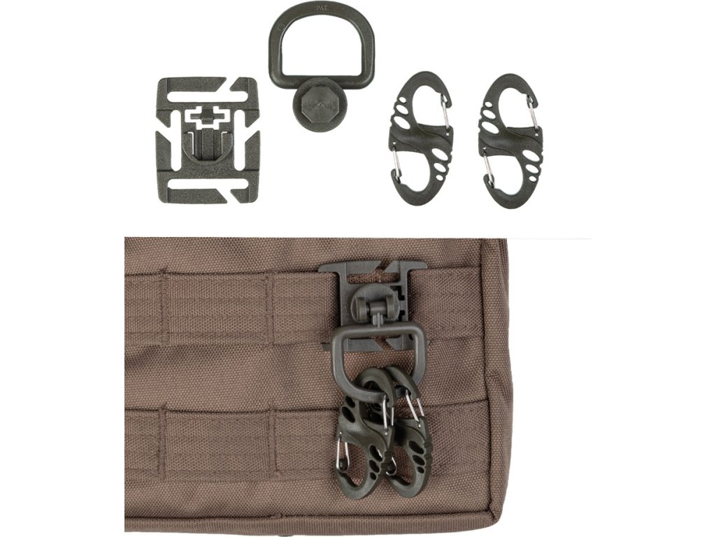 - nástavec s D-kroužkem Duraflex se připojuje ke smyčkám Molle