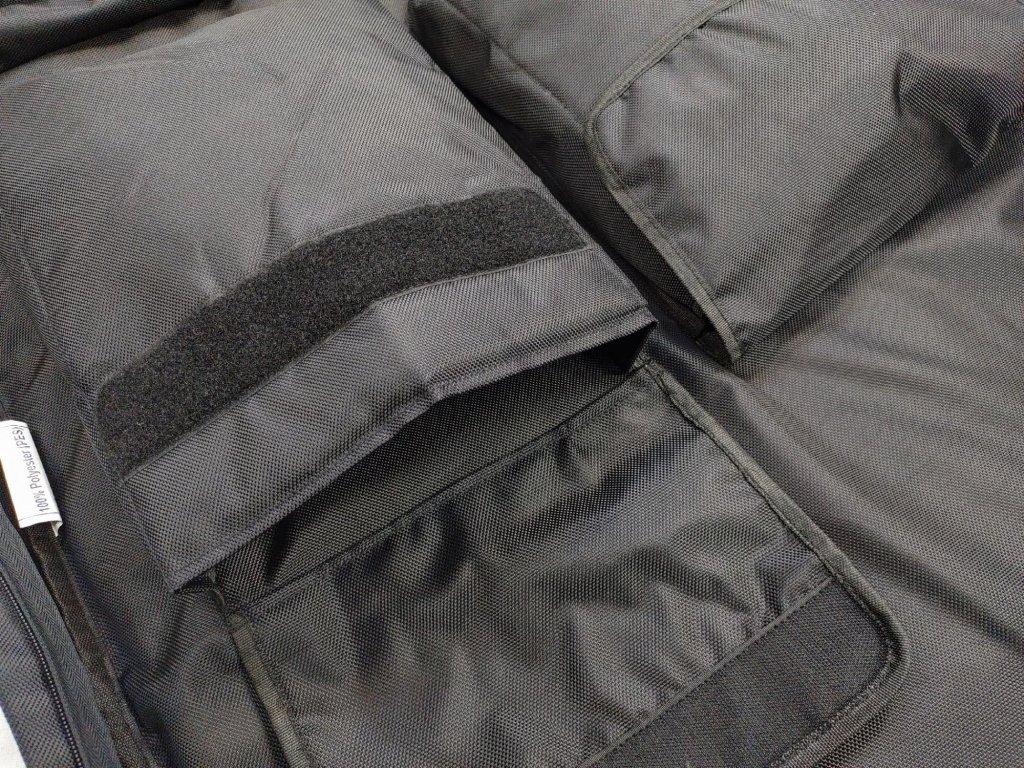 - Vnitřní prostor je vybaven dvěma kapsami na suchý zip a jednou velkou zasouvací přihrádkou.