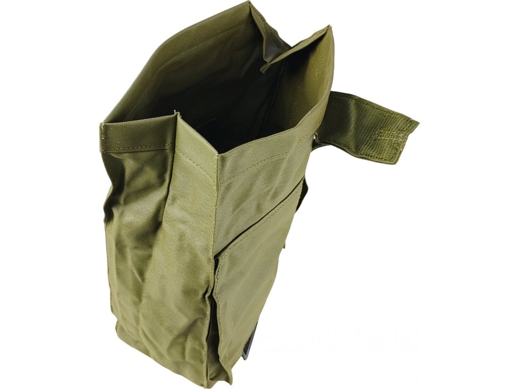 - Boční kapsa s klopou na suchý zip, uvnitř přihrádky je popruh s otvory pro přehlednou organizaci příslušenství plynové masky.