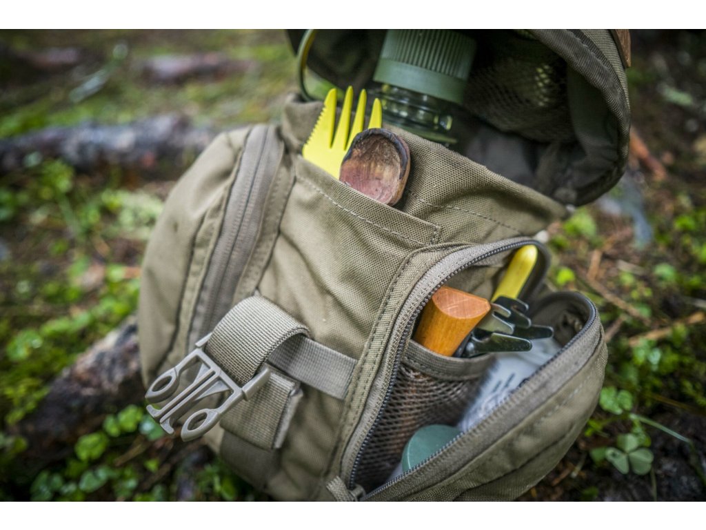 Essential Kitbag® byl navržen tak, aby pojal veškeré vaše základní vybavení pro bushcraft nebo sadu pro přežití. Vejde se do ní láhev na vodu s hrnkem, skládací vařič, svítilna, kompas, provaz, šicí souprava atd. Celá sada je přehledně uspořádána v samostatných kapsách.