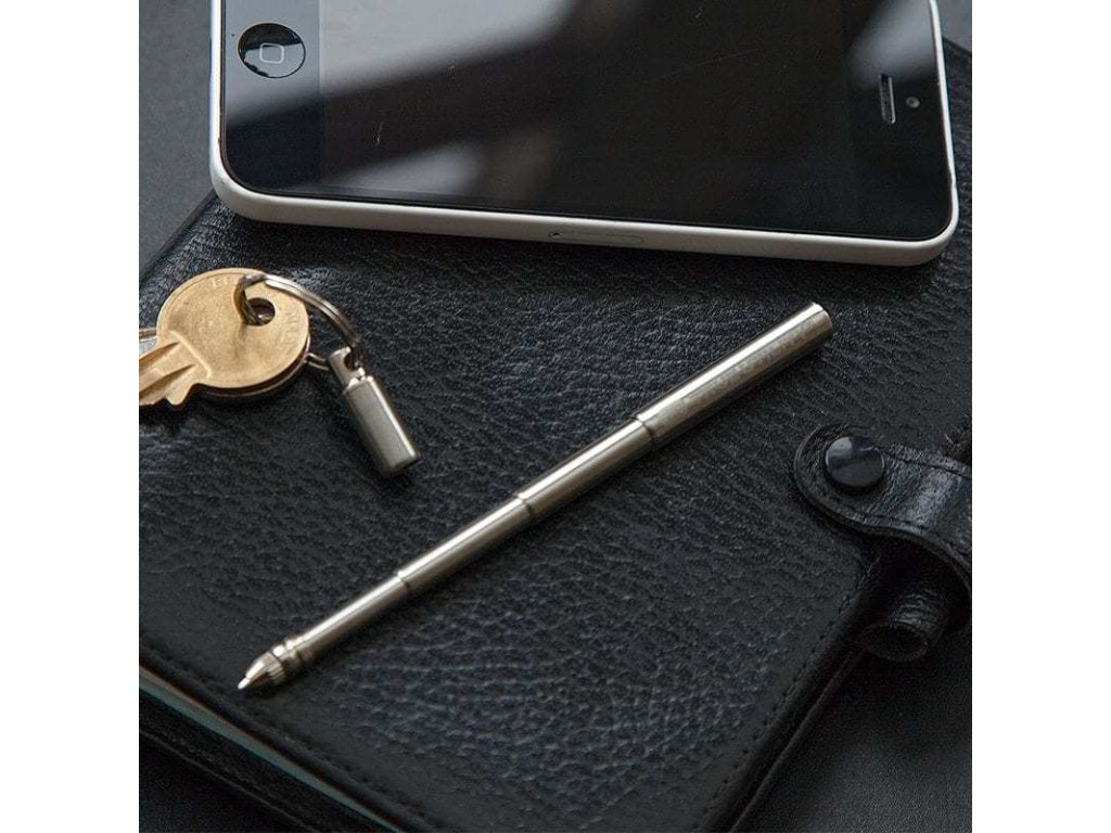 Teleskopické pero Telepen od značky True Utility je perfektní volbou na cesty a na každodenní nošení. Díky kompaktním rozměrům ji lze připnout jako klíčenku ke klíčům či na batoh. Pero ve složeném stavu měří pouhých 50mm, tudíž je velmi nenápadné. Po vysunutí do délky získáte 115 mm dlouhé pero, se kterým se píše jedna radost. Pero je vyrobené z odolné nerezové oceli a je dodáváno se třemi náhradními náplněmi.