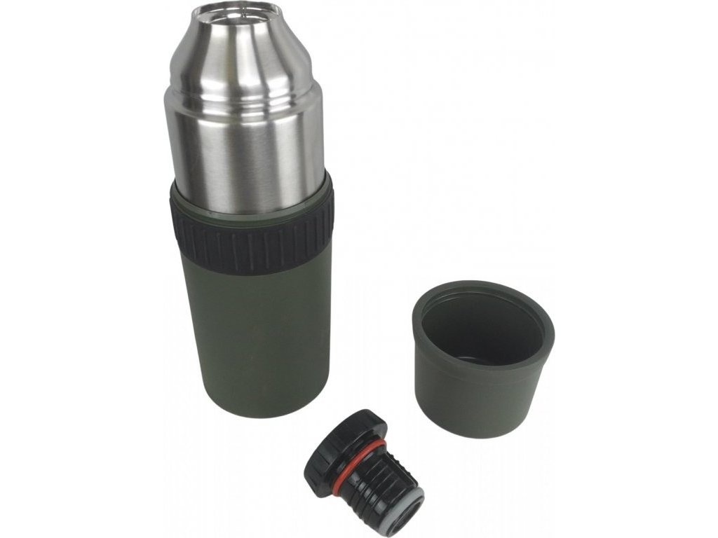 - NL Dutch Royal Army Vacuum thermos bottle, Double-walled Thermos Flask, Stainless Steel, 1 litre, Olive Green, Type II., used.