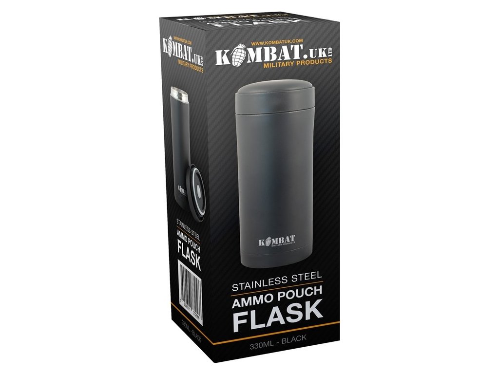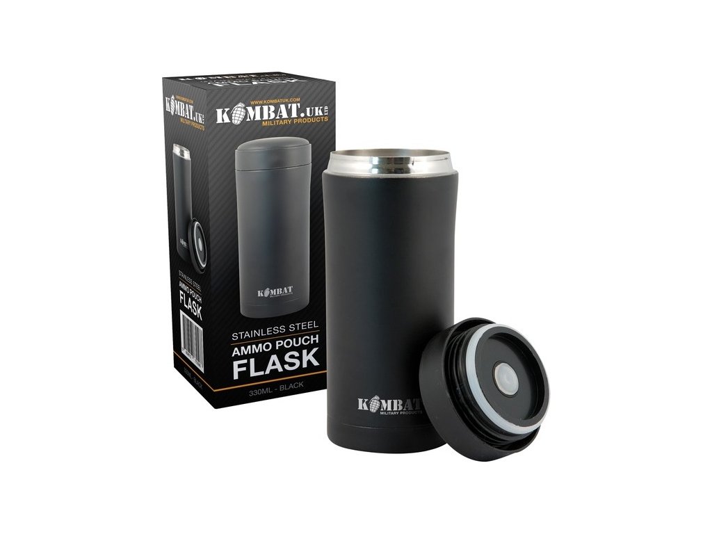 Termoska černá z nerezové oceli s úložným prostorem ve víku Kombat 330ml