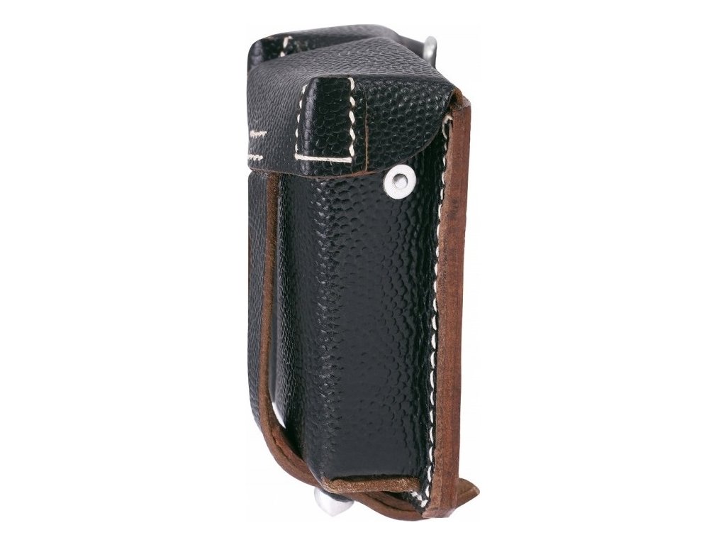 - Na zadní straně sumky je kovové poutko pro zavěšení, a dvě kožená poutka na provlečení opasku o maximální šířce 45 mm.