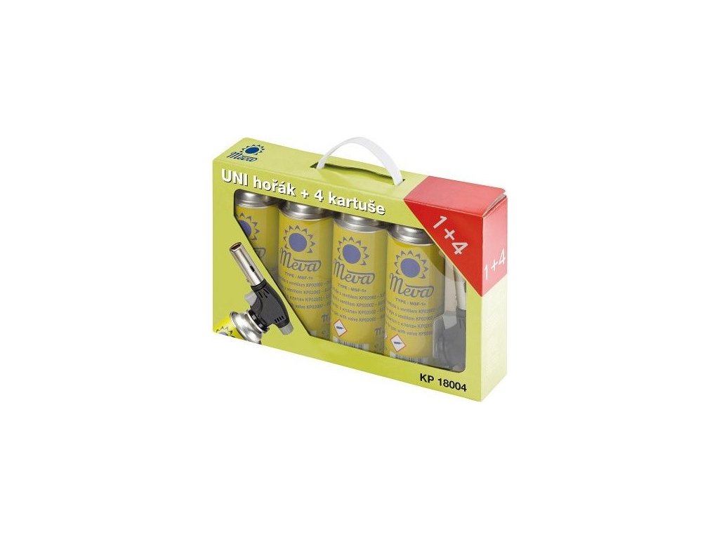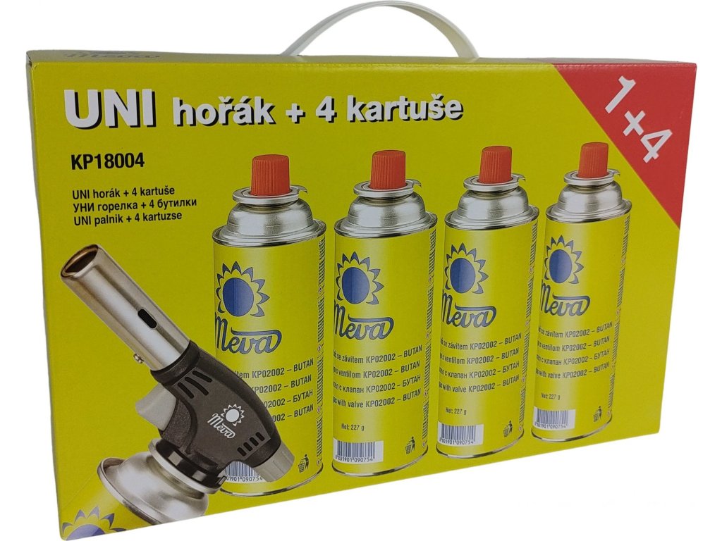 UNI hořák+ 4 plynové kartuše MEVA KP18004 (zvýhodněný set 1+4)