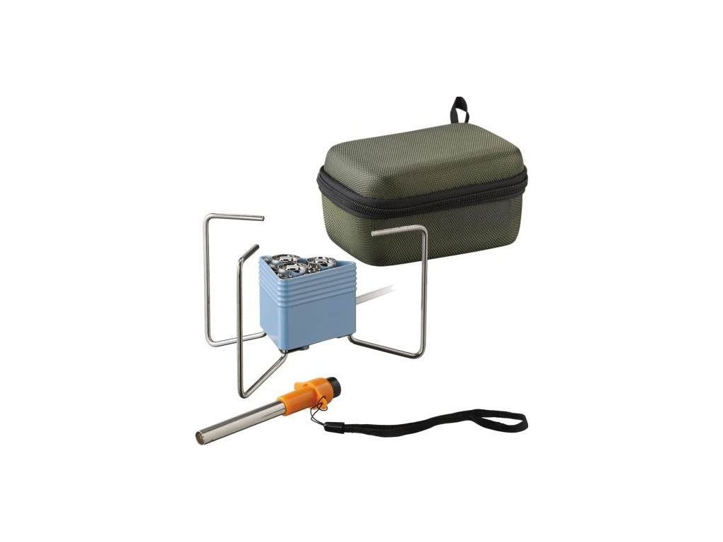 Součástí vařiče je samostatný piezo zapalovač a přepravní pouzdro (uzavíratelný obal na složený vařič a Outdoor zapalovač).