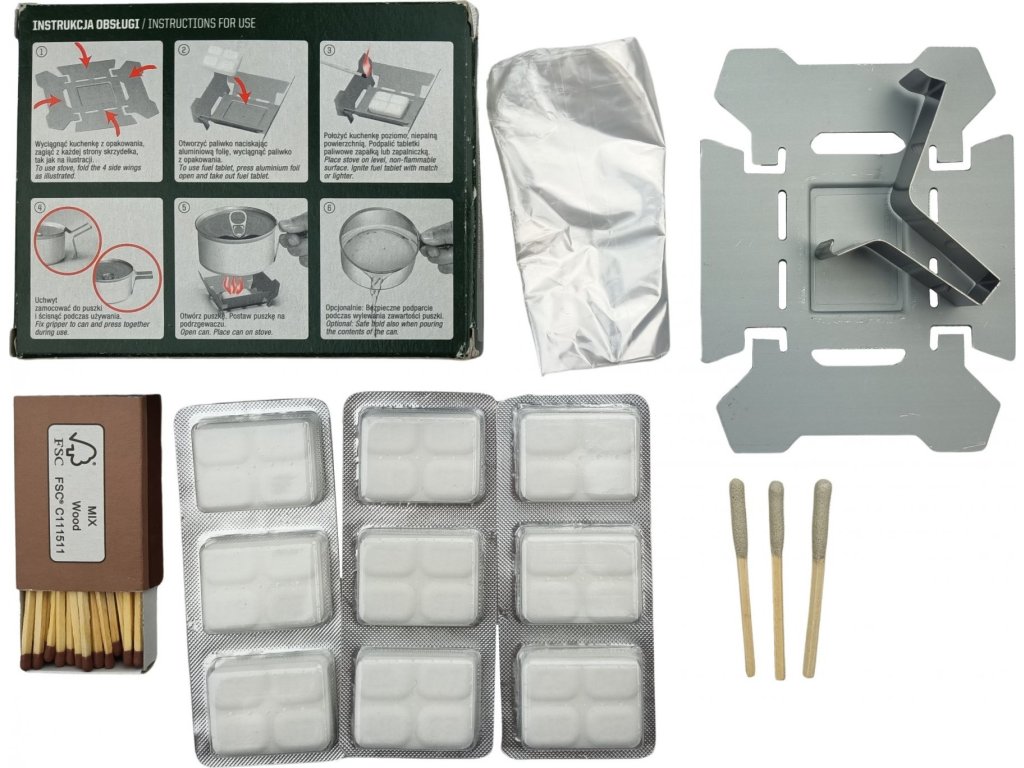 - Součástí je nové balení tuhých kostek pevného lihu (tuhý líh ESBIT®).