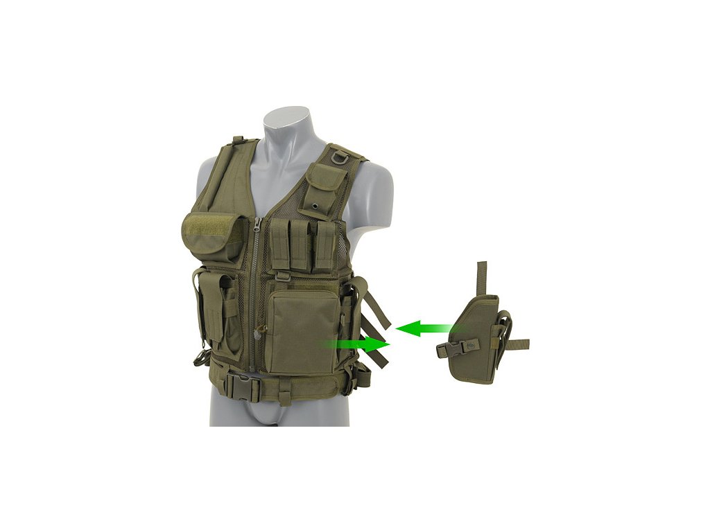 - nastavitelné odnímatelné pouzdro na pistoli se zásobníkem. Pistolové pouzdro lze vyměnit např.za univerzální pouzdro,které je součástí vesty