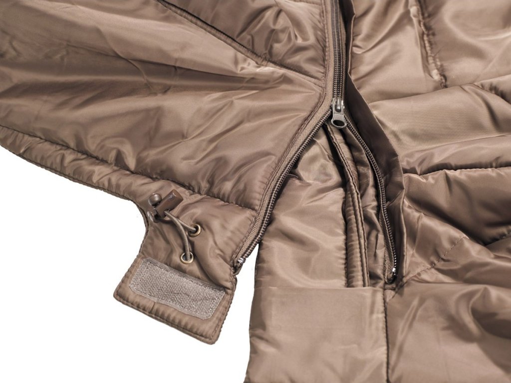 - pas, průramek (otvor pro vsazení rukávu) a kapuce se stahováním pružnou šňůrou s brzdou pro zamezení úniku tepla