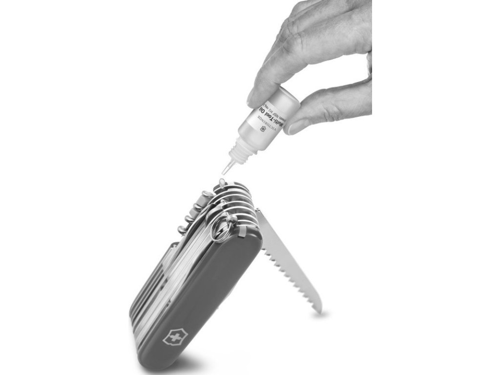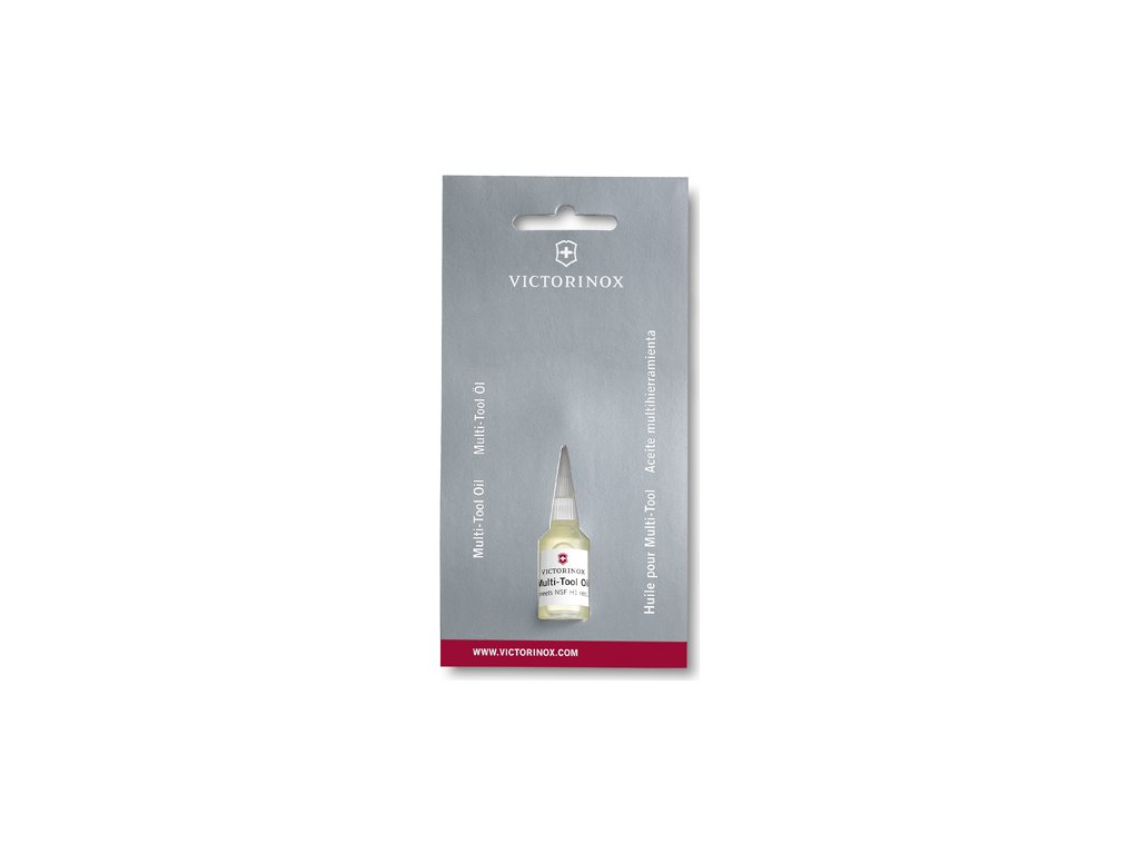 Antikorozní olej od firmy Victorinox určený k údržbě zavíracíh nožů. Pokud se čepel otvírá obtížně,doporučuje se nůž opakovaně otevírat a zavírat v teplé vodě,aby se vyplavily případné nečistoty.Nůž důkladně osušit a následně dosedací plochy promazat olejem Victorinox. Díky úzkému hrdlu dávkujete olej přesně tam,kam potřebujete.