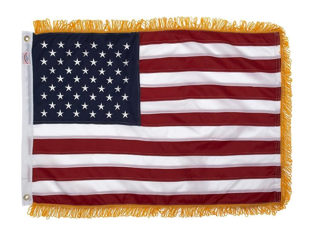 Slavnostní vyšívaná vlajka USA s třásněmi 91x152cm vel.M