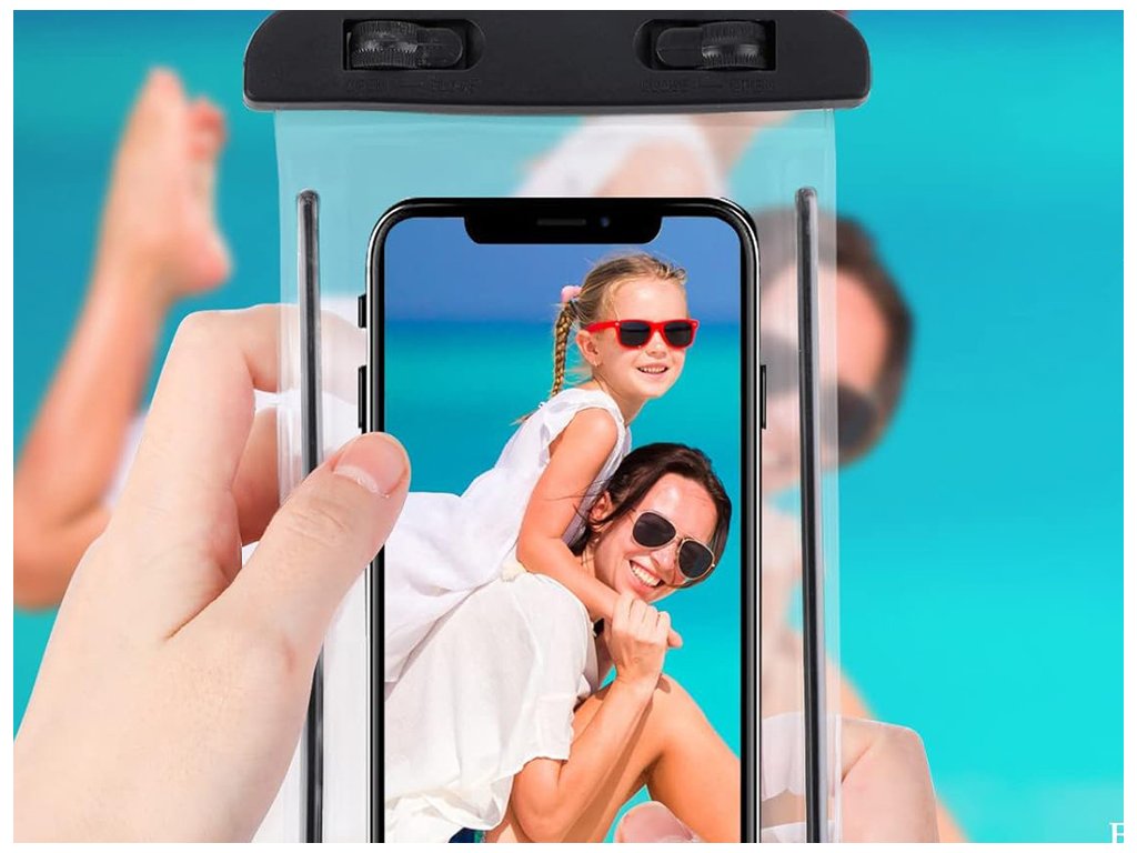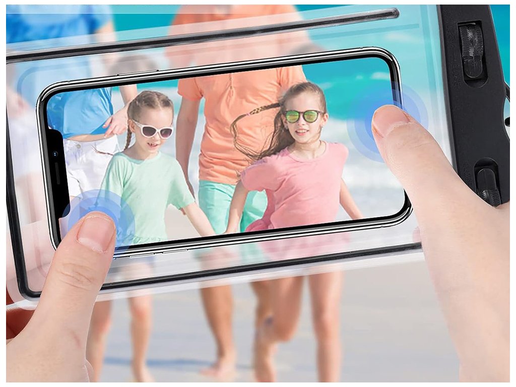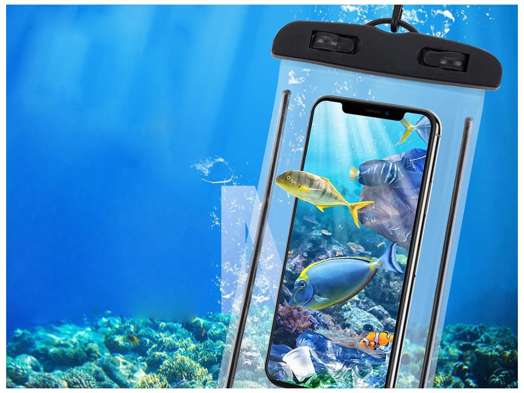 - Voděodolné pouzdro na telefon, ideální na bazén, pláž, kajak, raft, člun, paddleboard.