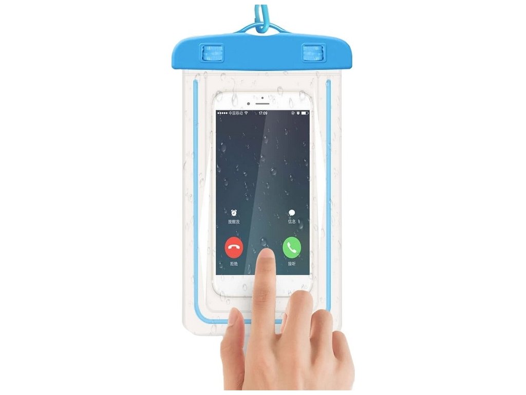 - Smartphone Bag, Waterproof, Transparent, Sky Blue.
