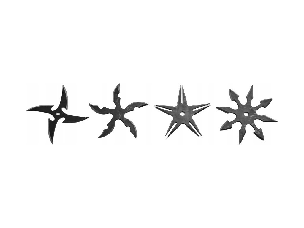 Vrhací souprava 4 hvězdic různého designu v praktickém nylonovém pouzdře na opasek. Klasický design známí z filmových zpracování. Každá hvězdice je vyrobena z jednoho kusu kvalitní nerezové oceli.