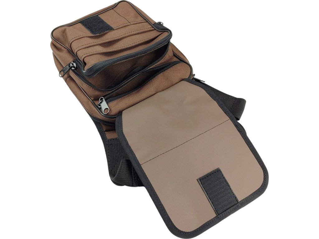 - Zadní (větší) kapsa uzavřená na zip se dvěma jezdci je určena pro uložení zbraně do držáku, upevněného pomocí Velcro pásku.