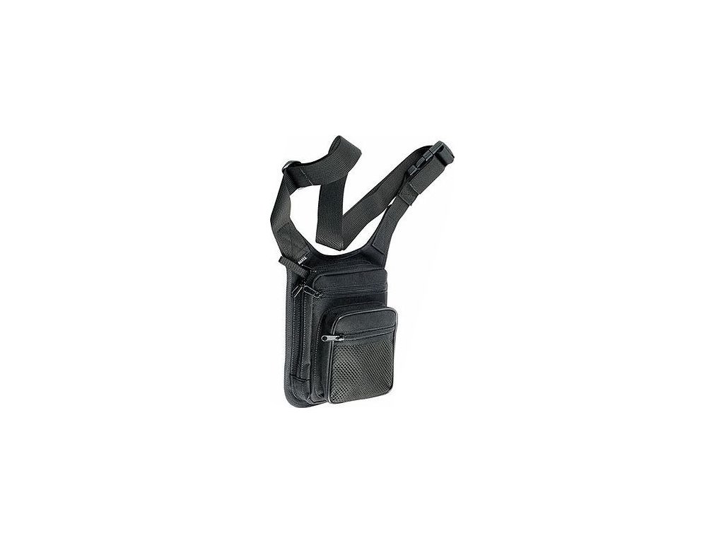 - Hlavní přihrádka doplněna 10 cm širokým elastickým organizačním popruhem, zajišťující pistoli a náhradní zásobník, a nylonovým poutkem. O zapínání se stará dvoucestný zip přizpůsobený pro pravostranné používání.