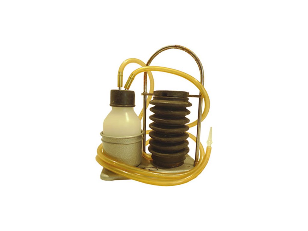 - Šlápnutím na profilovanou desku se stlačí měch. Přitom uniká vzduch z měchu přes ventil do ovzduší a ventil uzavírá cestu k lahvi. Při odlehčení rozpíná pružina měch, v měchu nastává podtlak, který otevírá ventil a uzavírá ventil. Tím se dosahuje v lahvi i měchu stejného podtlaku. Při uzavřené hadici lze několika sešlápnutími dosáhnout podtlaku minimálně 0,5kp/cm2.