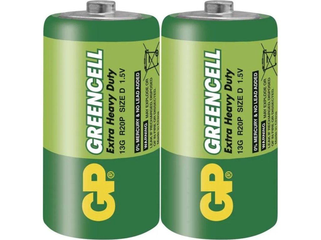 Zinková baterie GP Greencell R20 1,5V D (velký monočlánek) 2 kusy