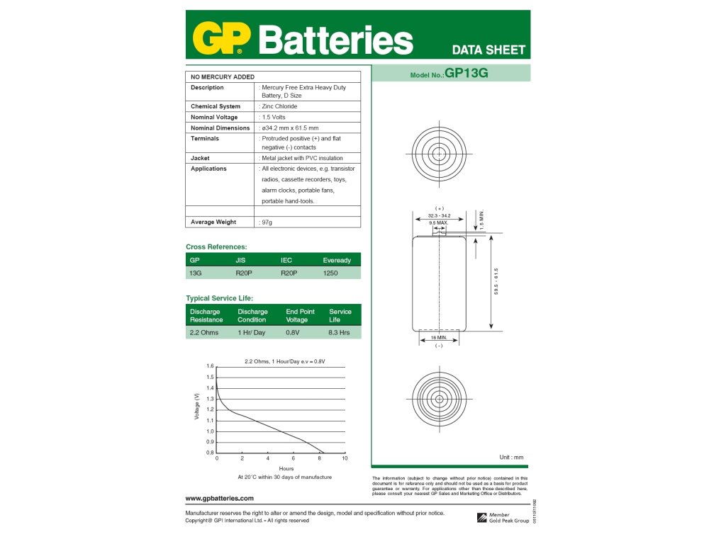 Řada GP Greencell je osvědčená klasická zinkochloridová technologie, která poskytuje stabilní výkon při dlouhé době skladování. Baterie neobsahuje rtuť ani kadmium, je tedy šetrnější k životnímu prostředí.