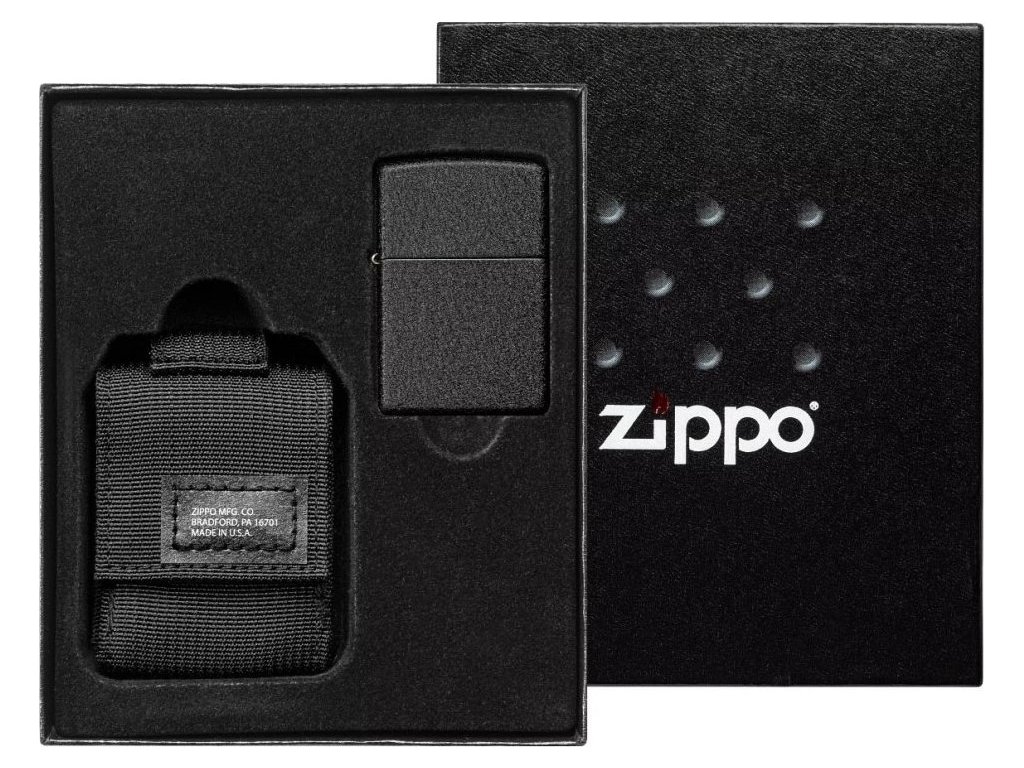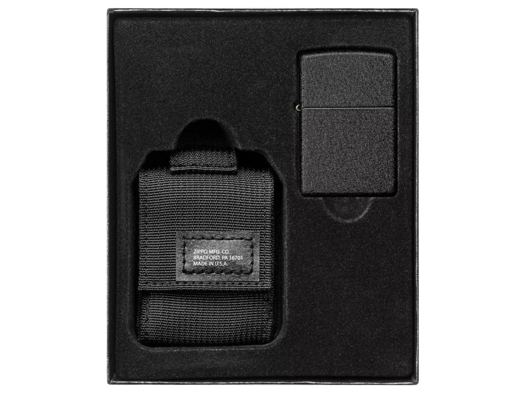 - Součástí sady je černé taktické pouzdro a zapalovač 26075 Black Crackle™.