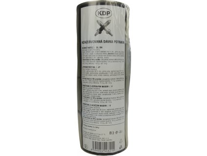 Vojenské klasické balení konzervované dávky potravin KDP, obsahující čtyři konzervy po 180 gramech masného výrobku (Drůbeží nářez / Játrová paštika / Konzerva s vepřovým masem /...
