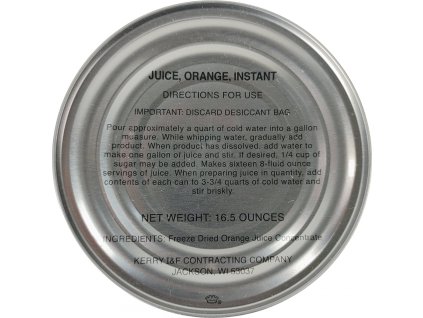 Lyofilizovaný pomerančový koncentrát v konzervě na přípravu 1/2 galonu (cca 1,89 litrů) pomerančového džusu, nebo 1 galon (cca 3,78 litrů) pomerančové šťávy. Jde o ideální zdroj...